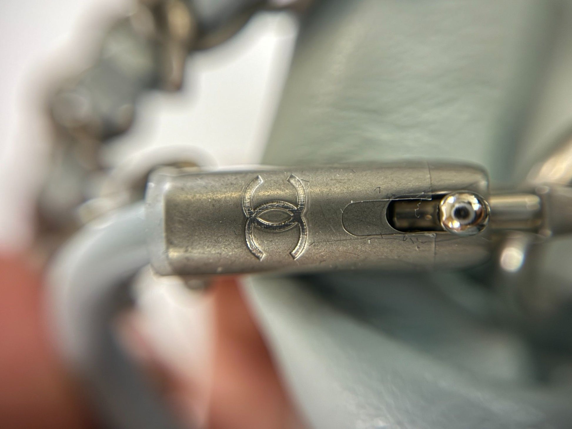 From Chanel's March 2025 Spring/Summer collection, this dreamy pastel-toned chain bag is a rare gem—the only one of its kind online. Crafted in supple lambskin leather with a subtle quilted diamond stitch, it features an elegant muted blue shade paired with dark silver-tone hardware for a modern edge. The 22 × 21 cm silhouette is compact yet functional, adorned with a signature CHANEL logo and medallion charm. Lightweight and slouchy with a chic chain strap, it's the perfect blend of effortless luxury and Parisian flair.