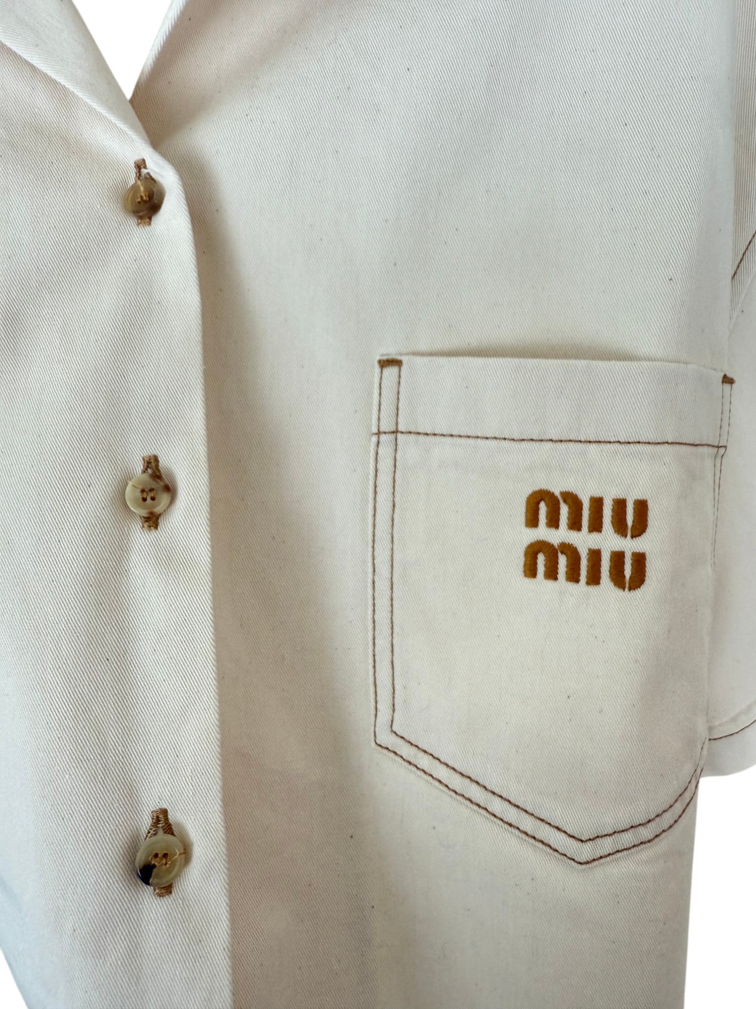 Miu Miu Beige Cropped Denim Shirt with Logo Embroidery – Retail Price: $1,280