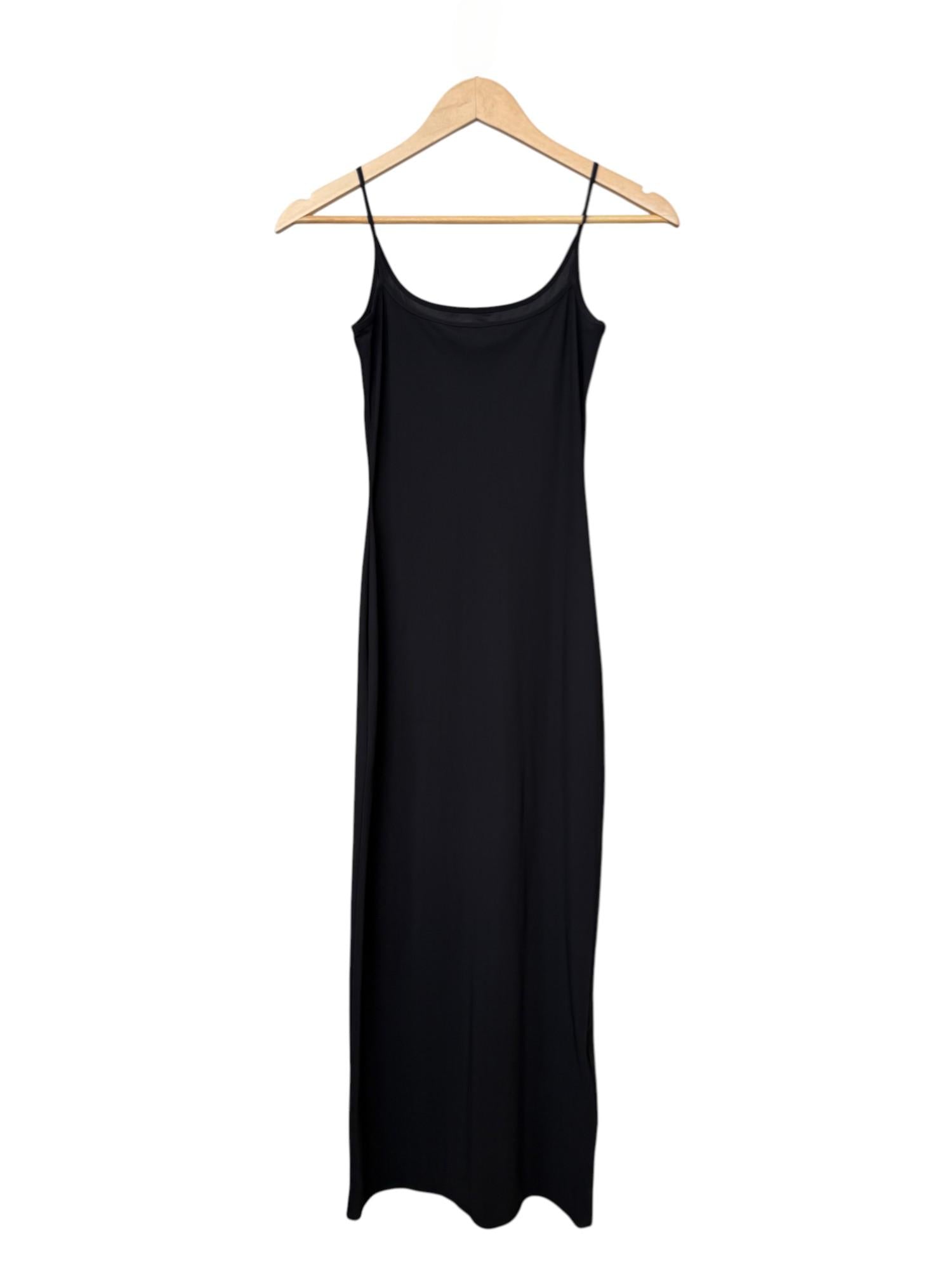 Sleek and modern, this Miu Miu black midi slip dress features a minimalist silhouette with subtle logo lettering for a refined statement. Designed with slender straps and a clean finish, it’s perfect for layering under a blazer for an elevated daytime look, or worn solo with heels for an elegant evening out. A versatile piece that transitions seamlessly from city chic to resort style. Gently worn, in excellent condition.Available for sale on the official website.