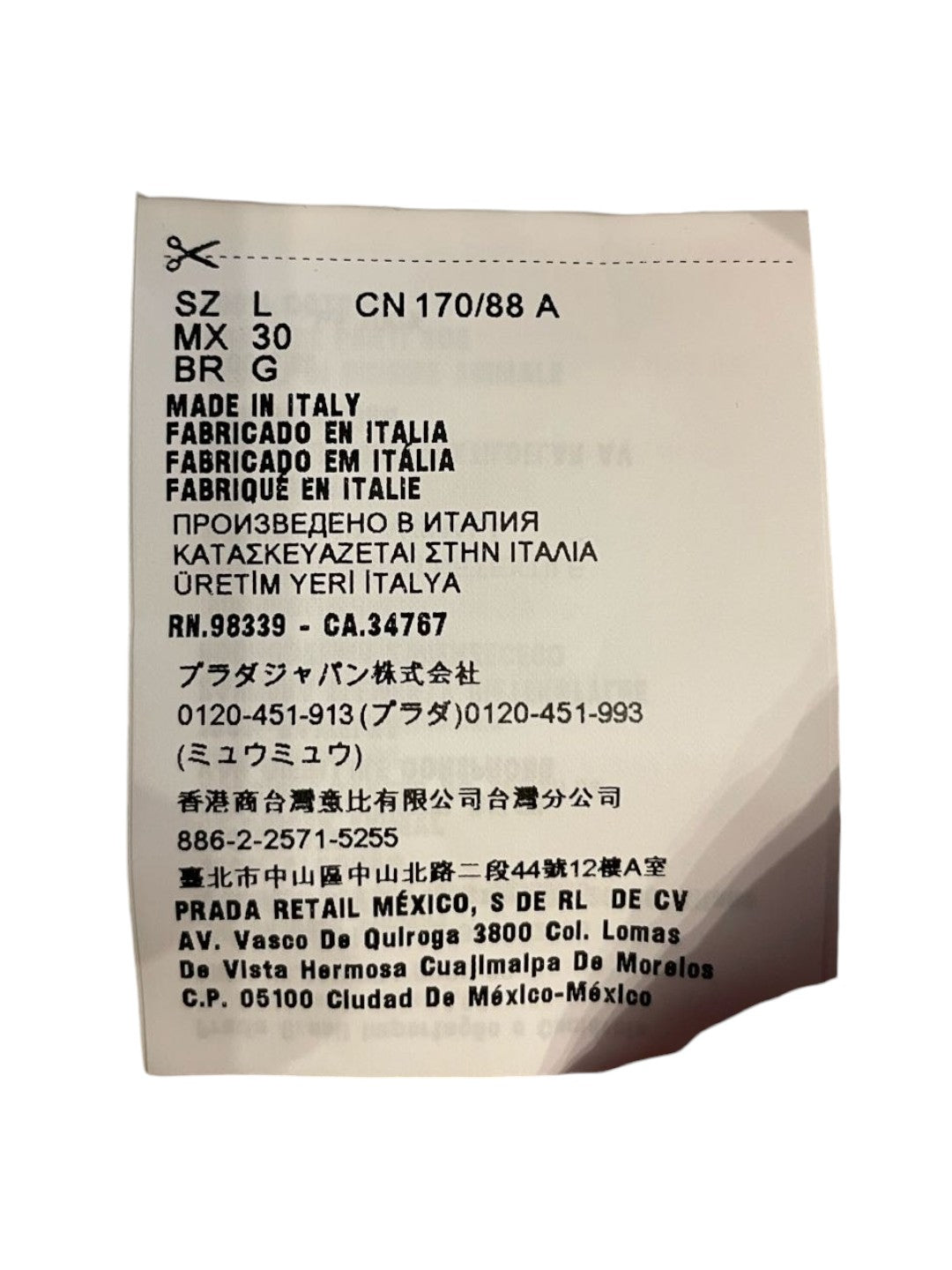 This Miu Miu cream short-sleeve blouse is a playful yet refined piece, featuring a delicate Peter Pan collar with baby blue embroidered trim and the iconic Miu Miu logo at the chest. Cut in a boxy silhouette for a relaxed fit, it’s made from soft cotton that drapes effortlessly. In very good condition, this top adds a vintage-inspired charm to any elevated casual look.