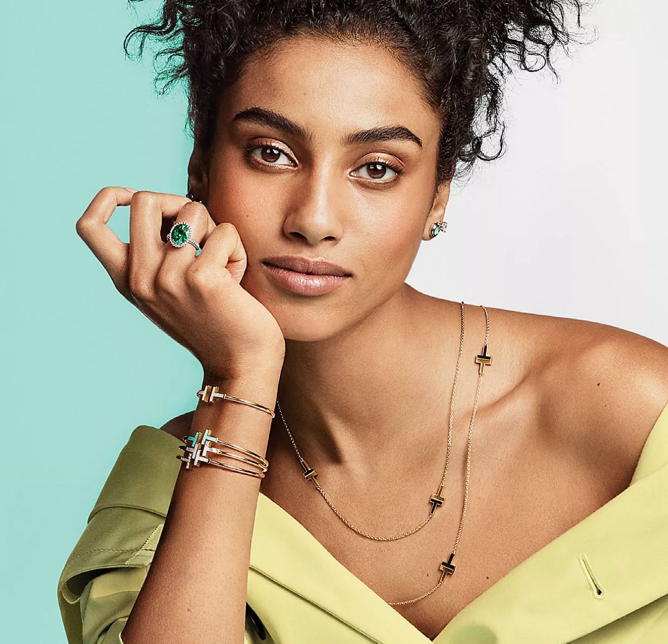 This Tiffany & Co. T-Square bangle features two signature T-motifs inlaid with lustrous mother-of-pearl and polished 18K yellow gold for a modern yet timeless statement. Wear it solo at the wrist for an elevated touch or stack with slim bangles and your favorite watch for on-trend layering—equally chic with a crisp white shirt and jeans by day or an evening dress for cocktails. An ideal gift for her and a standout addition to any fine-jewelry collection.