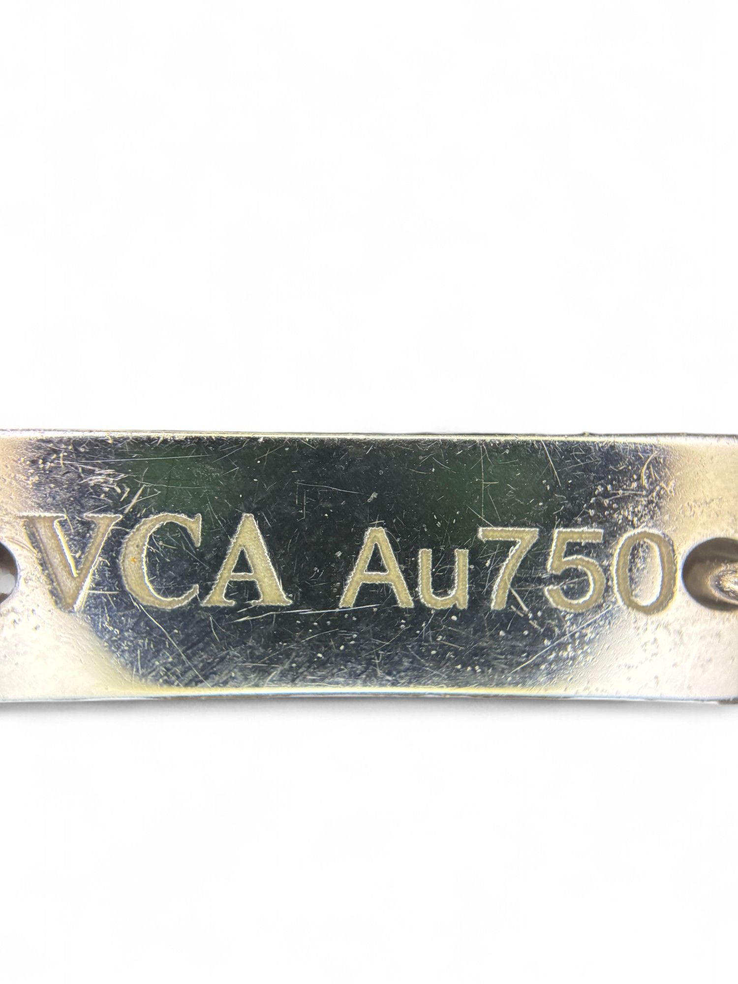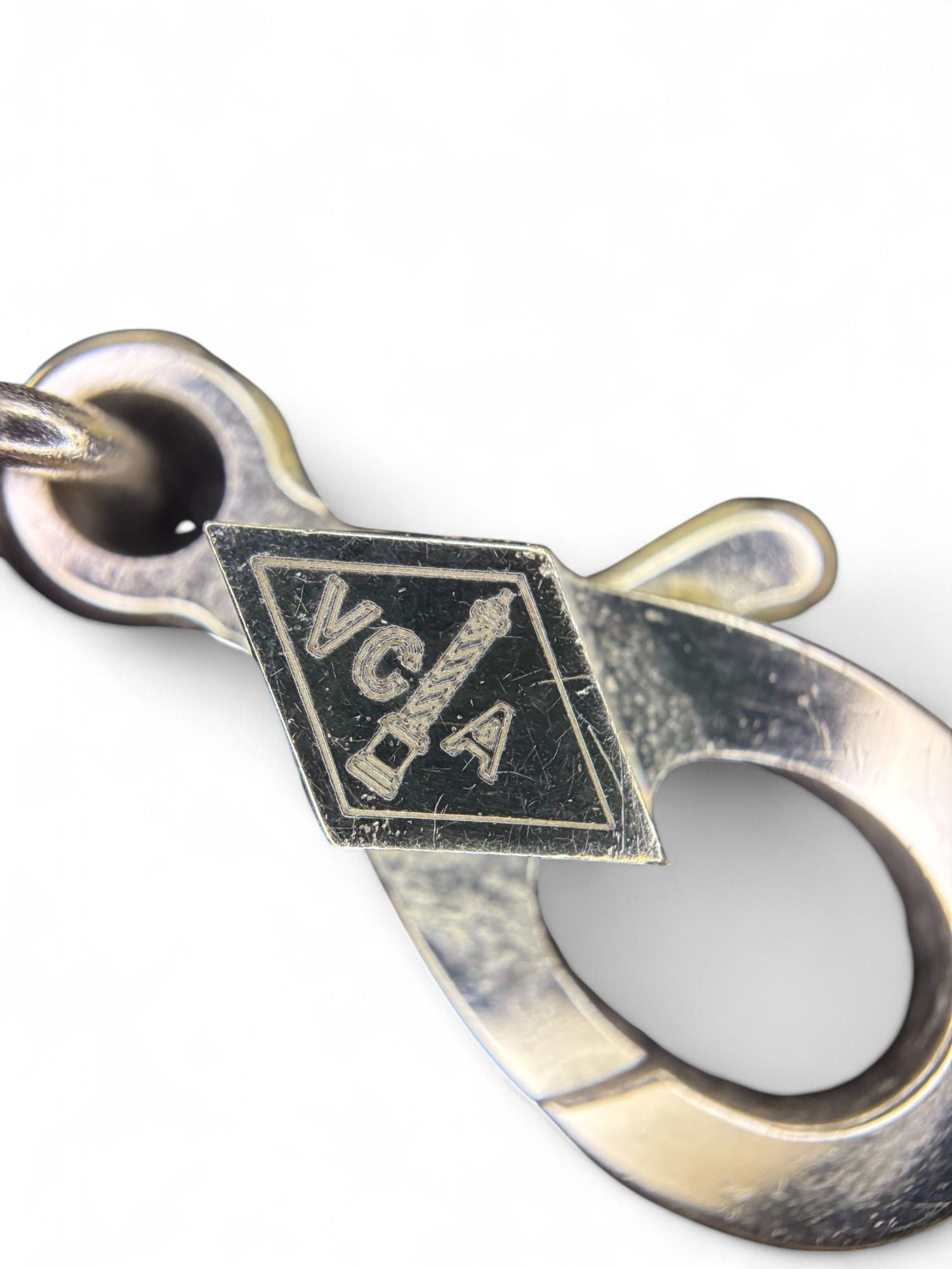 Understated yet captivating, this Van Cleef & Arpels Alhambra four-leaf clover pendant in lustrous mother-of-pearl set within 18K yellow gold’s signature beaded border brings everyday luxury to any look. The 16.5″ chain layers effortlessly over a tee for casual chic or elevates a silk blouse and tailored blazer at the office—an ideal gift for her and a timeless addition to any fine-jewelry wardrobe.